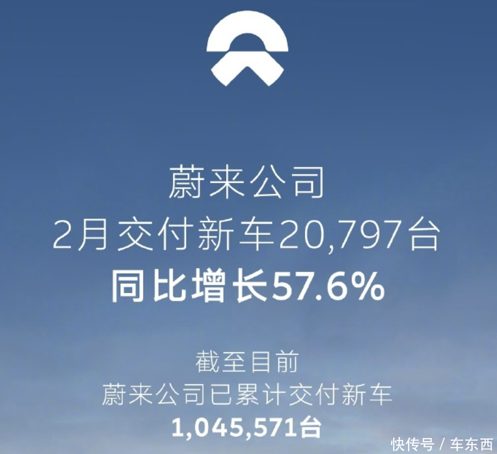 蔚来集团2月交付新车2.08万台,同比增长58%,这个增长速度还是很猛的,其中蔚来品牌交付量达到1.52万台。