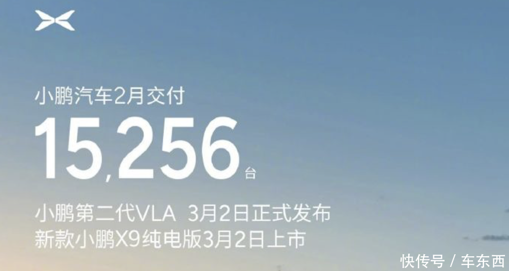▲小鹏汽车2026年2月交付量