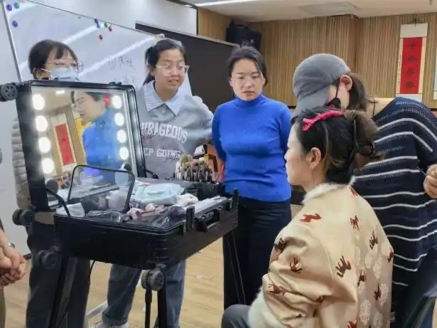 书法教室里墨香四溢,学员们静心执笔,从一笔一画中体会汉字的风骨与气韵。视频剪辑课上,学员们紧跟老师的节奏,学习剪辑软件的基础操作,从素材导入到转场特效,一步步解锁短视频制作的实用技能。化妆课堂则充满欢声笑语,老师手把手地教学日常通勤妆容技巧,学员们对着化妆镜认真练习,在变美的过程中收获自信与快乐。
